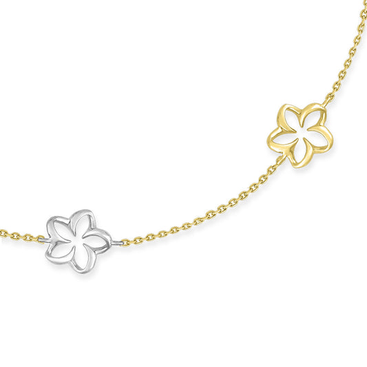 Tri-Color Five-Floating Plumeria Adjustable Anklet