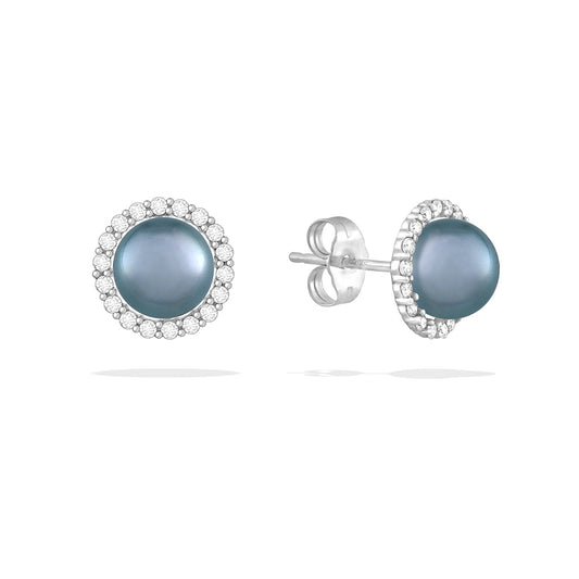Blue Akoya Pearl Halo Stud Earrings