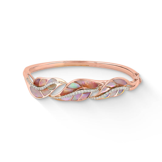 Maile Leaf Link Bracelet with Pink Mother of Pearl and Diamonds