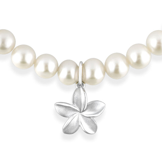 White Freshwater Pearl Plumeria Charm Bracelet