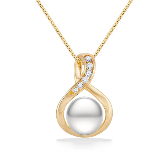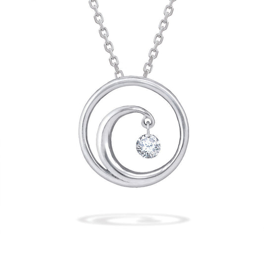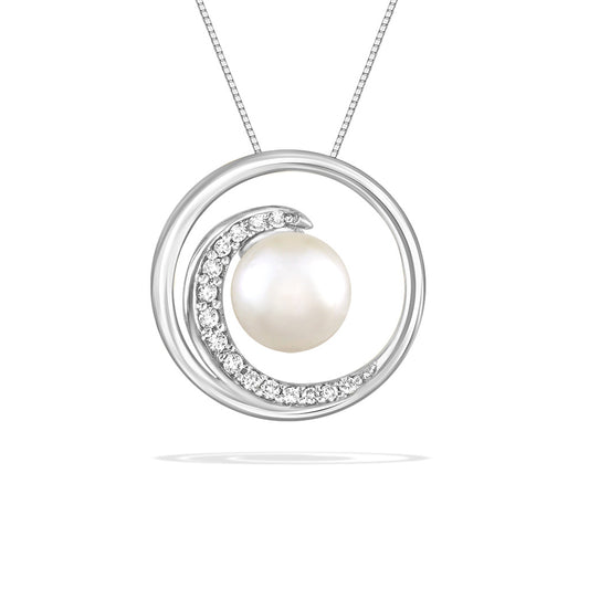 Wave Pendant with a White Akoya Pearl and Diamonds