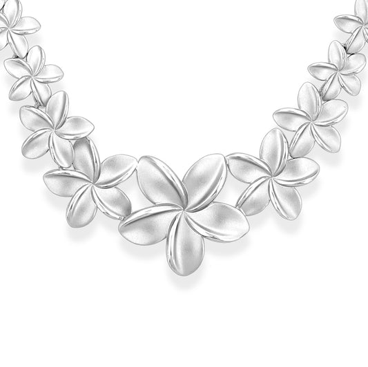 Sterling Silver Matte Plumeria Graduated Link Necklace