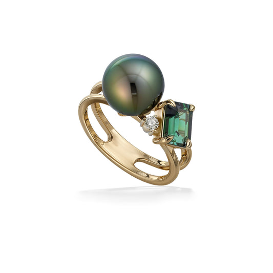 Tahitian Pearl, Green Tourmaline and Diamond Ring
