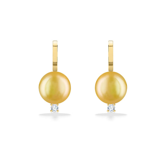 Golden South Sea Pearl Diamond Drop "J" Earrings, 11mm