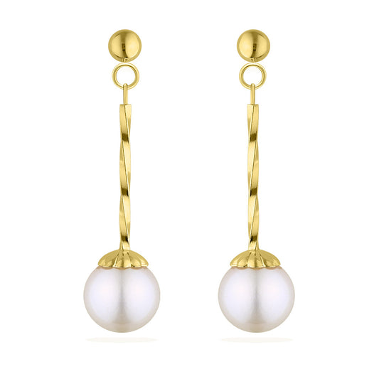 White Akoya Pearl Twisted Dangle Earrings