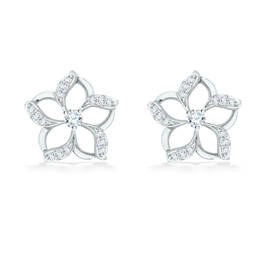 Floating Plumeria Stud Earrings with Pavé Set and Center Diamonds