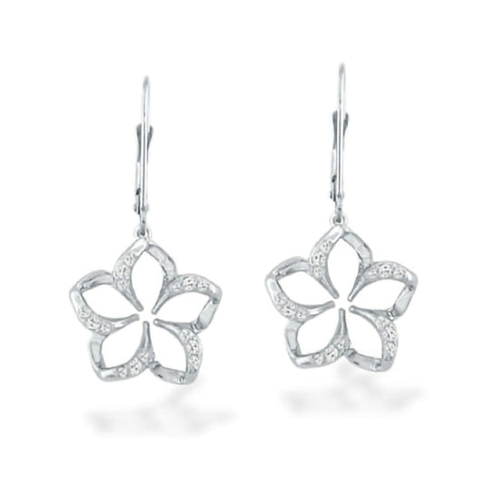Floating Plumeria Leverback Earrings with Pavé Set Blue Sapphires