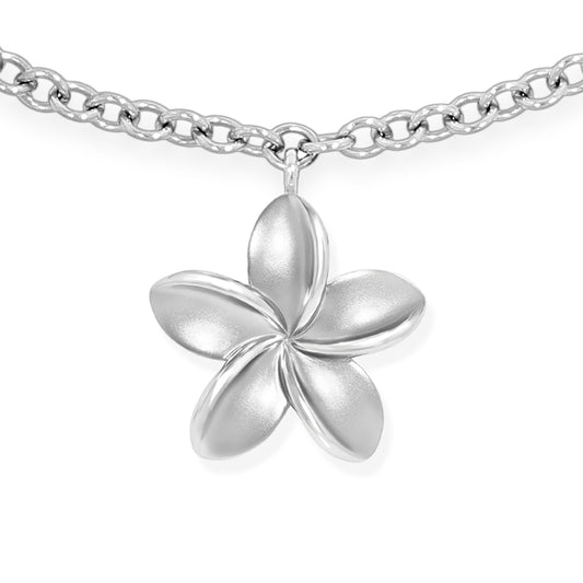 Sterling Silver Matte Plumeria Charm Adjustable Anklet