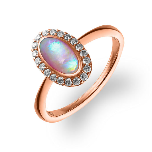 Wave Ring with Opal and a Center Diamond, Size 7