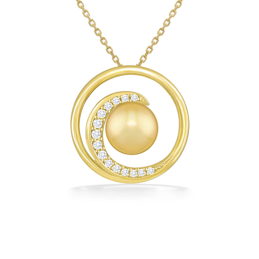 14K Yellow Gold Golden South Sea Pearl Wave Pendant