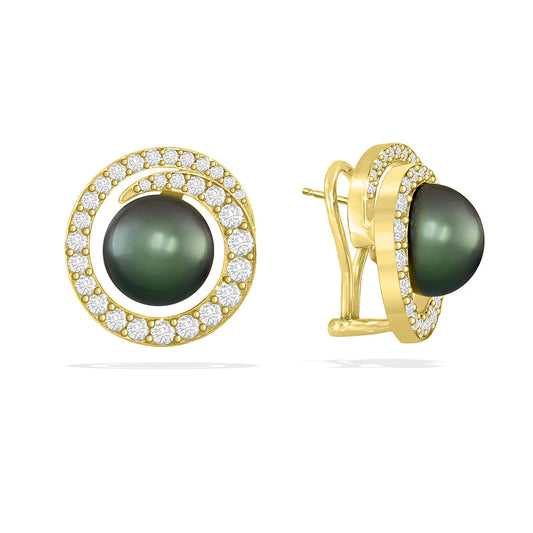 Wave Omega Earrings with Tahitian Pearls and Diamonds