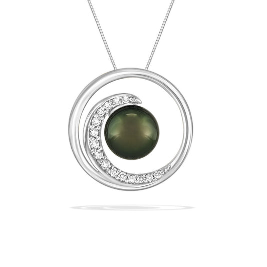Wave Pendant with a Peacock Akoya Pearl and Diamonds