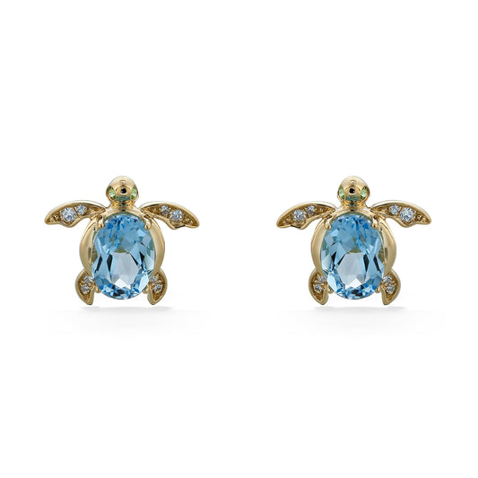 Effy Blue Topaz and Tsavorite Honu Stud Earrings