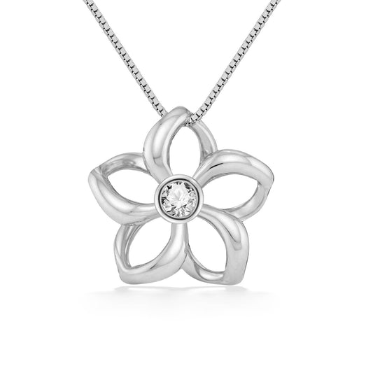 Floating Plumeria Pendant with Bezel-Set Center Diamond