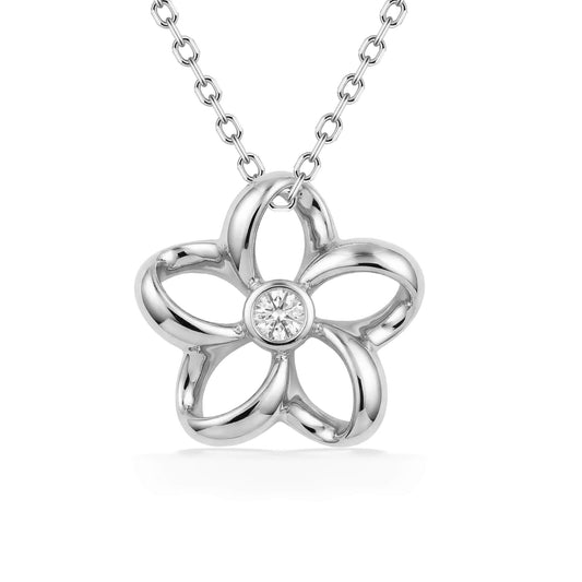 Floating Plumeria Pendant with Bezel-Set Center Diamond