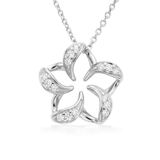 Classic Floating Plumeria Pendant with Pavé Set Diamonds