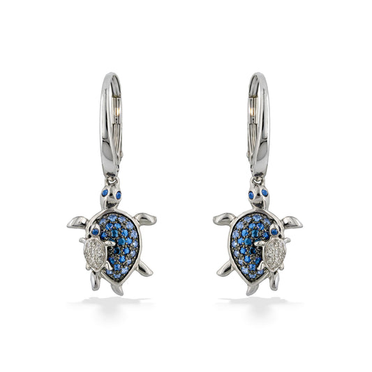 Petite Effy Mother and Keiki Sea Turtle Leverback Earrings with Blue Sapphires and Diamonds
