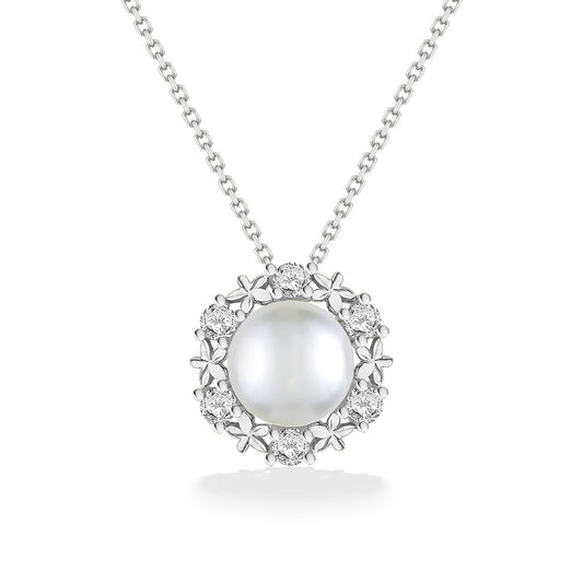 Pua Lei Pendant with Akoya Pearl and Diamonds