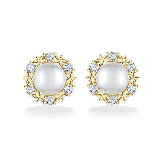 Pua Lei Stud Earrings with Akoya Pearls and Diamonds