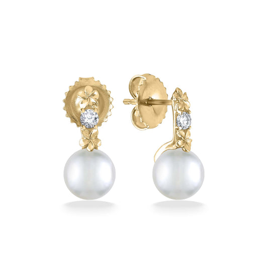 Pua Lei Dangle Stud Earrings with Akoya Pearls and Diamonds