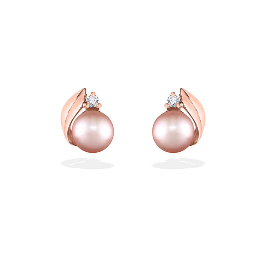 Maile Leaf Freshwater Pearl Stud Earrings with Diamonds