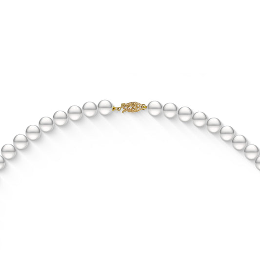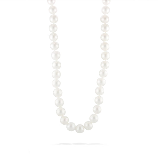 A freshwater pearl necklace is crafted from pearls grown in lakes and rivers. Known for their variety of shapes, colors, and sizes, these pearls often have a softer glow and come in shades of white, pink, lavender, or peacock. Freshwater pearl necklaces are versatile, elegant pieces suitable for casual and formal occasions. They offer the classic beauty of pearls while remaining a more affordable option compared to Akoya or South Sea pearls.