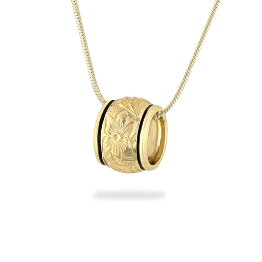 This traditional Hawaiian jewelry is crafted from 14K Yellow Gold, White Gold or Rose Gold to suit all tastes and to match any skin tone or personal preference. There is a variety of designs to choose from – from scroll-around engraving patterns to Old English letter engravings with black enamel on a reflective chip-chop background. Even the subtle engraving of scrollwork on a basic Hawaiian bracelet elevates it to something unique. A jewelry piece does not need to be adorned by Diamonds or gemstones to stand out. The engraving itself is a captivating design element. Its texture and intricate details draw eyes and elevates the piece’s uniqueness.
