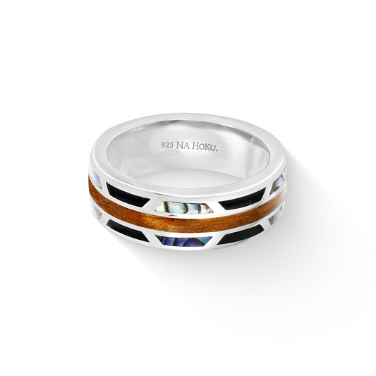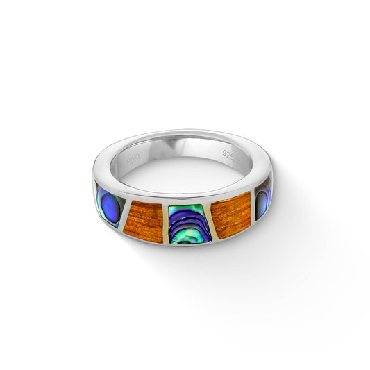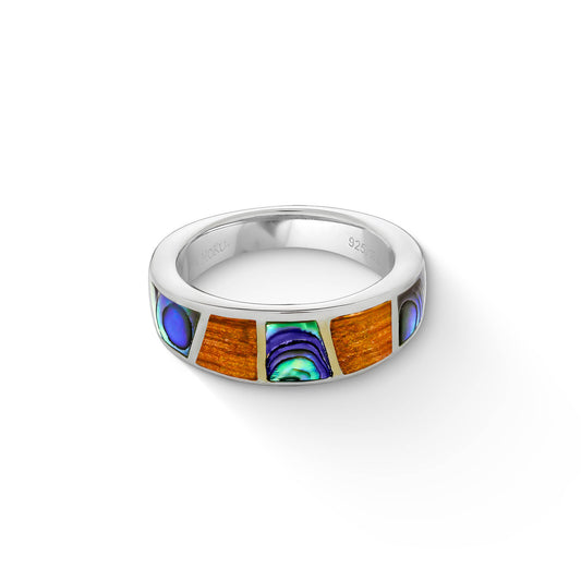Silver and Gold Abalone and Koa Wood Inlay Ring, Size 10
