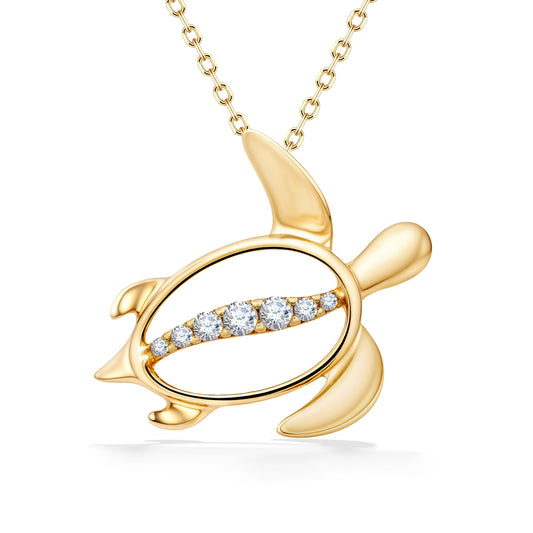 In Hawai’i, the green sea turtle is also known as the Hawaiian Honu. These majestic creatures can live 80 years and longer, and they hold an important place in traditional Hawaiian culture; they are considered a symbol of protection, vigilance, and peace. Our Honu and Sea Turtle Jewelry Collection honors these graceful creatures with fine jewelry crafted from the finest materials. Choose a 14K Gold turtle necklace made with colorful gemstone inlay, a pair of Sterling Silver turtle earrings, or rings adorned with sparkly diamonds for sea turtle jewelry that is both beautiful and meaningful.