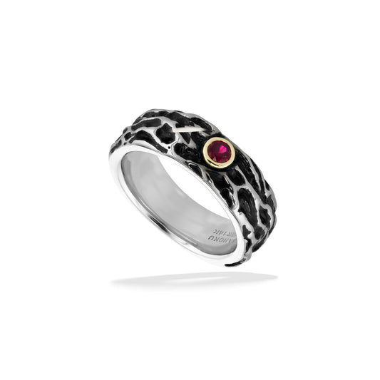 Silver and Gold Kilauea Ruby Ring, Size 10