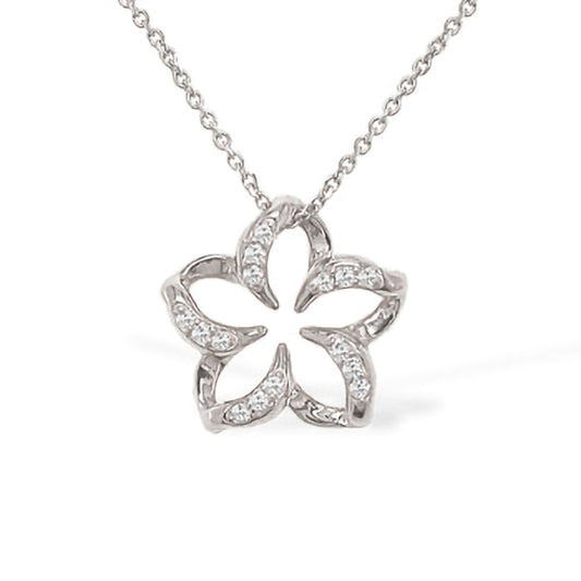 Small Floating Plumeria Pendant with Pavé Set Diamonds