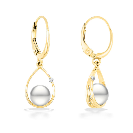 White Akoya Pearl Raindrop Diamond Leverback Earrings, 6.5mm