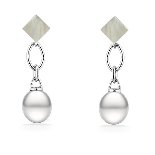 Freshwater and Mother of Pearl Drop Dangle Earrings, 9.5-10mm