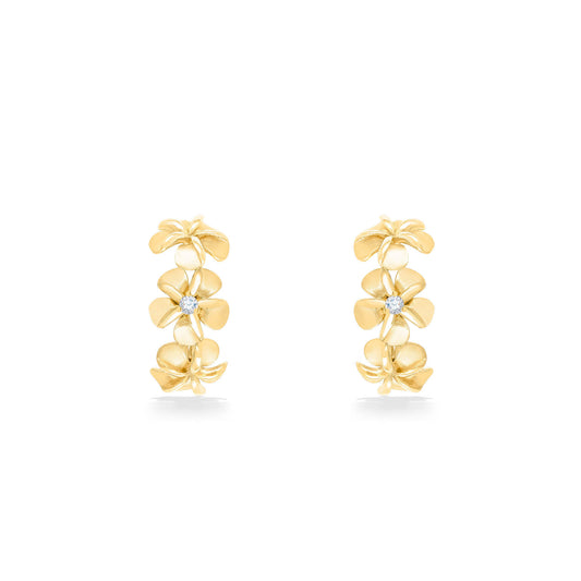 Three Plumeria Half Hoop Stud Earrings with Diamonds