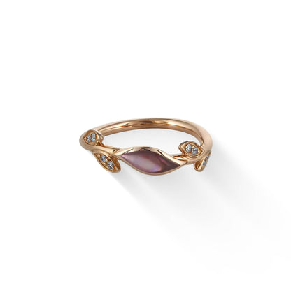 14K Rose Gold Kabana Vine Ring with Pink Mother of Pearl Inlay and 0.08 Carats (total weight) of Diamonds. Please indicate the size in the comment field during the checkout process. Some sizes may require additional delivery time and may result in a higher price.
