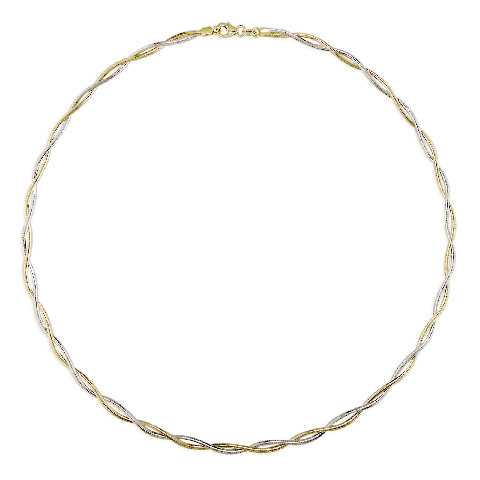14K Yellow and White Gold Twisted Omega Necklace. The necklace measures approximately 18" in length.