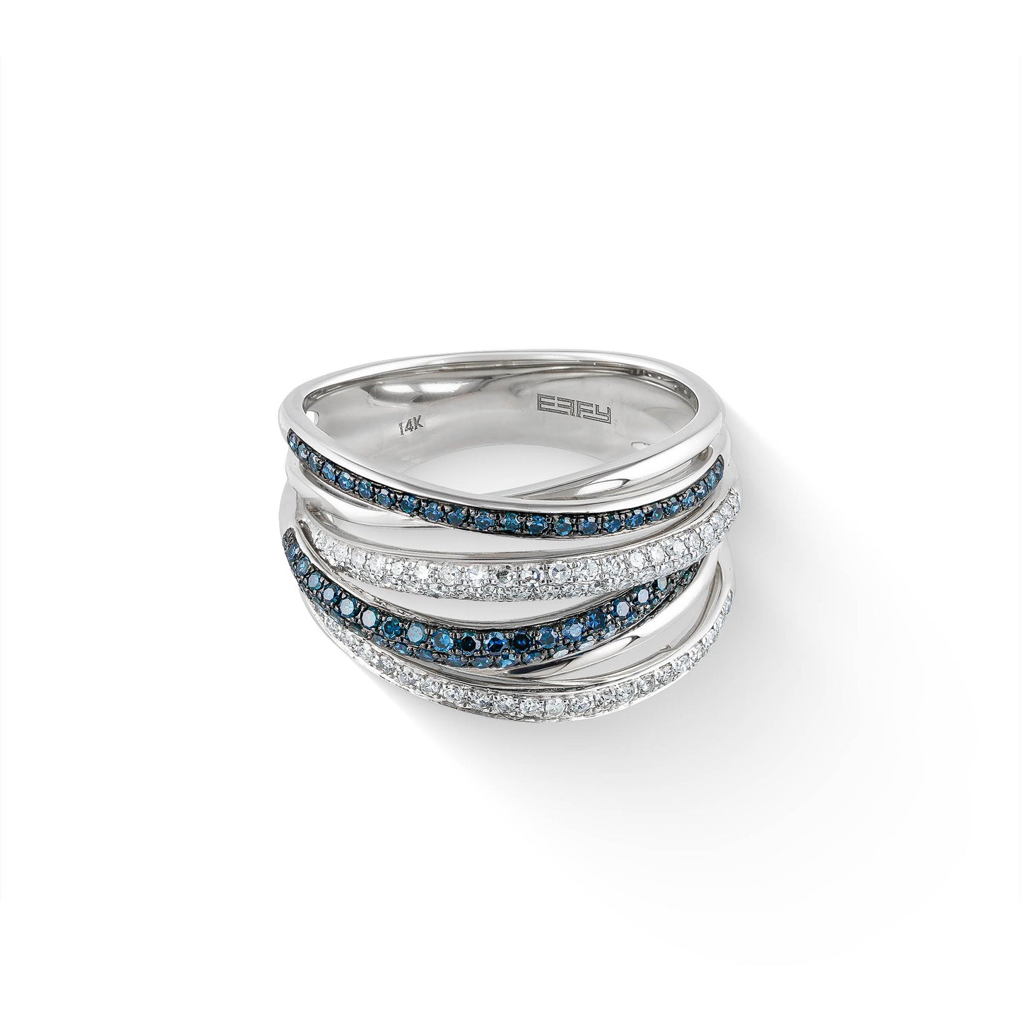 14K White Gold Effy Bella Crossover Ring with 0.56 Carats (total weight) of Blue and White Diamonds.