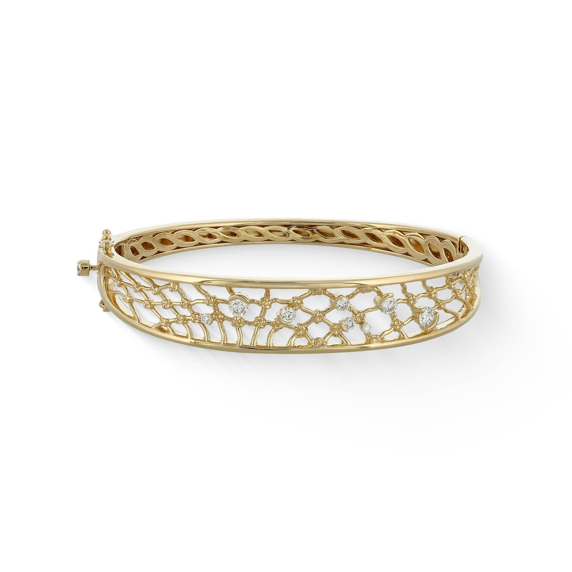 14K Yellow Gold Hukilau Net Bangle with 0.51 Carats (total weight) of Diamonds. The inner circumference of the bangle measures approximately 7.50".