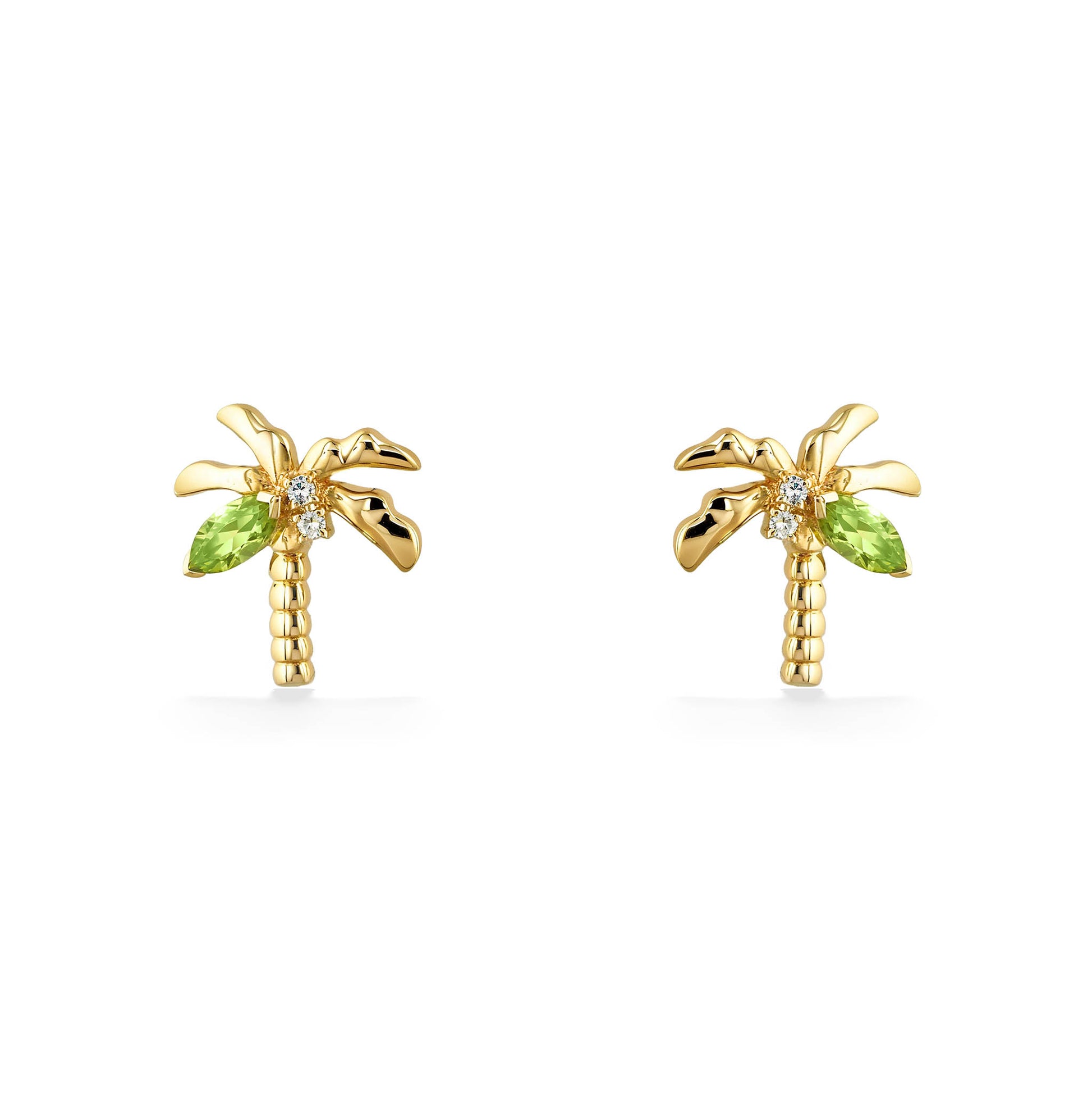 Palm Tree Stud Earrings with Peridot and Diamonds